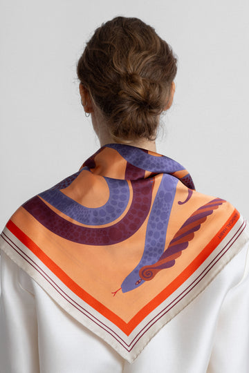 In collaboration with ALAS, Lina has created a series of silk scarves inspired by mythological narratives. Her illustrations transform these everyday accessories into objects of modern ritual.