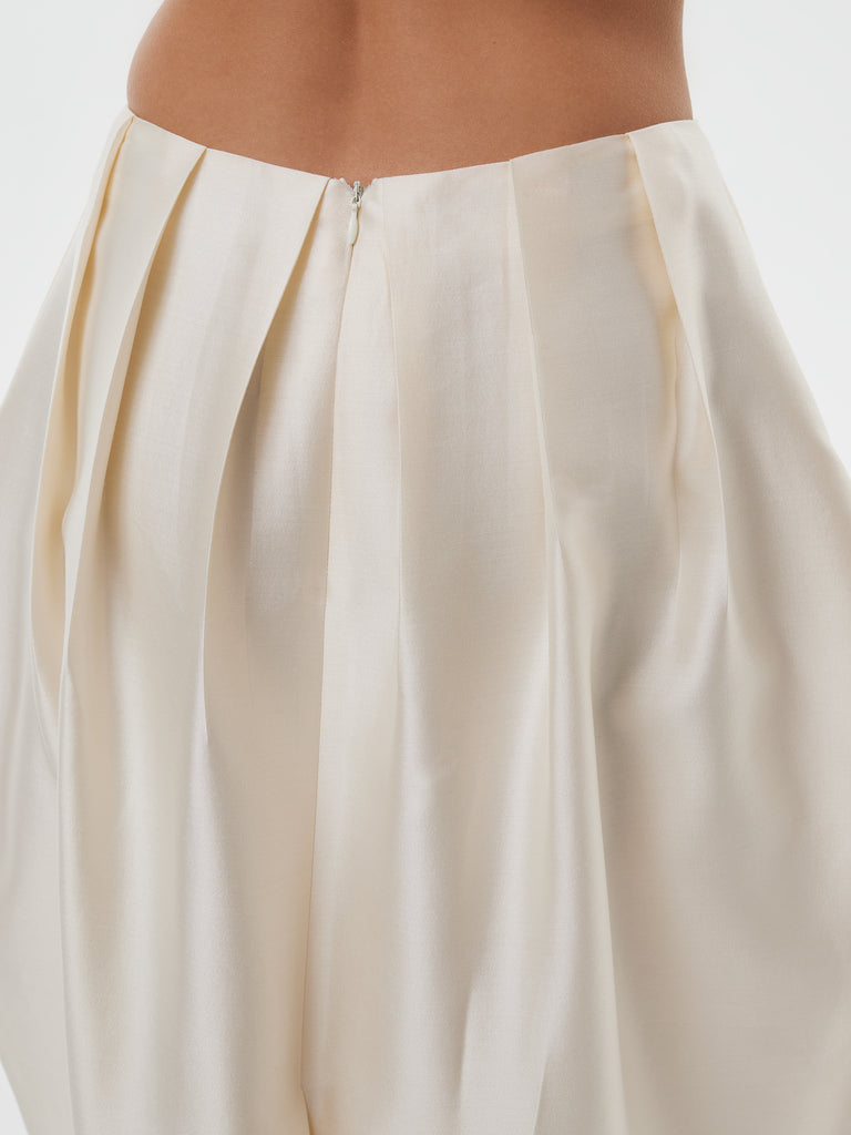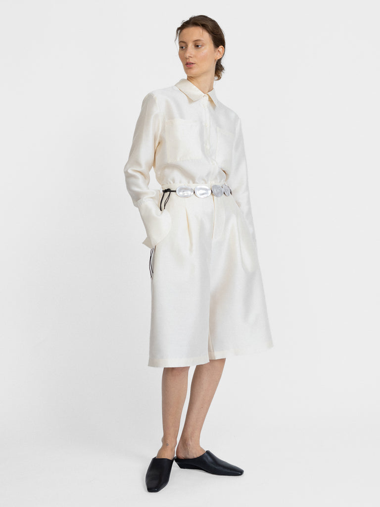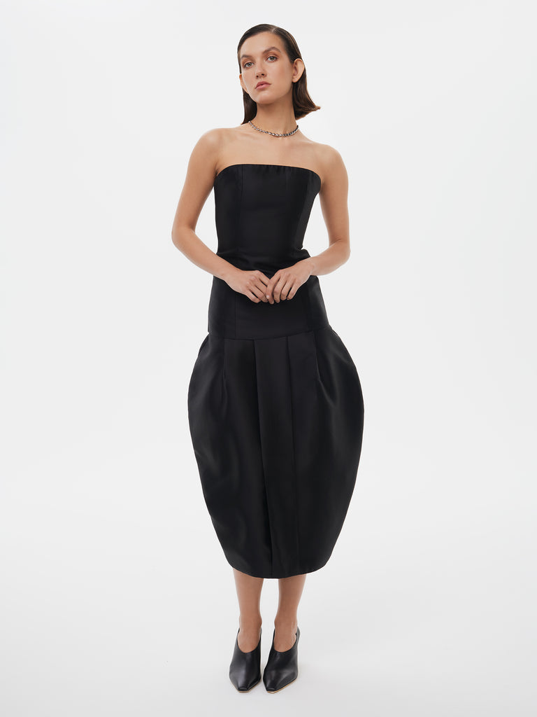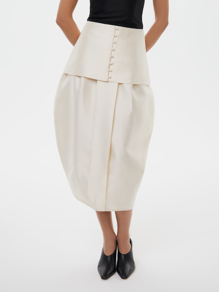 Winter festivities call for something both playful and monumental. These silk-wool pieces are cut like armor for the magic-makers — the ones who do not announce themselves, but somehow everyone notices when they appear. Floral-inspired shapes and textures invite you to blossom without apology. Transformable and sculptural, made to be layered and worn together or apart — this festive collection is a capsule for the fearless, the wild at heart.