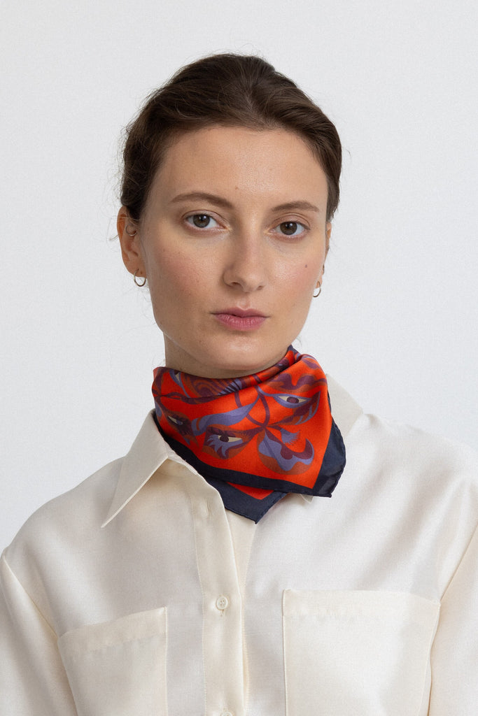 Hand rolled silk scarf series featuring original artwork by Lina Vyšniauskaitė