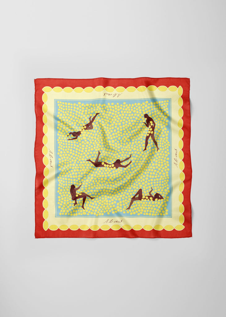 In collaboration with ALAS, Lina has created a series of silk scarves inspired by 20th-century nature mortes and Post-Impressionist paintings. Her illustrations transform these everyday accessories into objects of modern ritual.