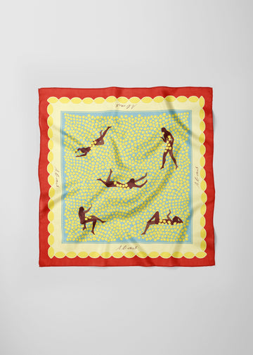 Hand rolled silk scarf series featuring original artwork by Lina Vyšniauskaitė.