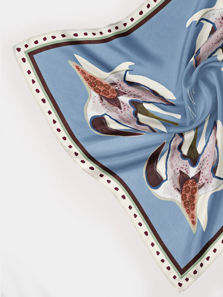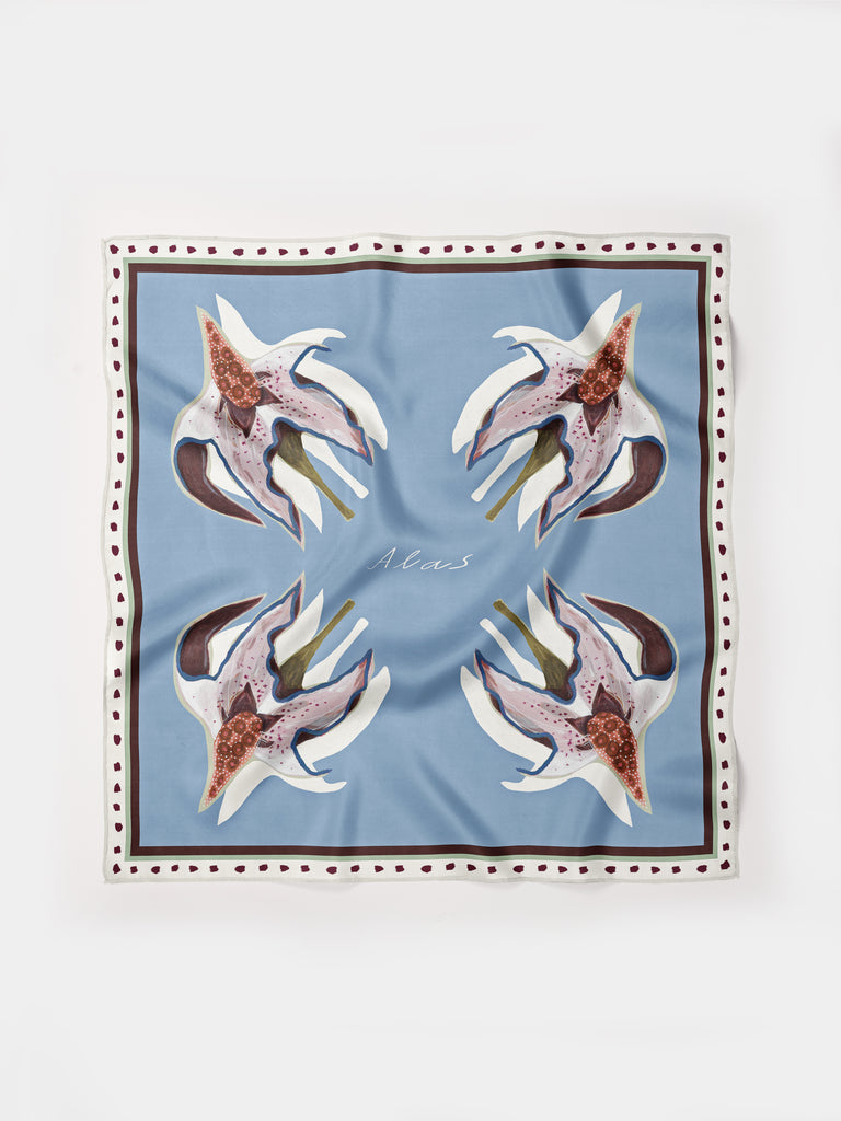 Hand-rolled silk scarf from the new series featuring original artwork by Kristė Stan. The collection explores the imagined, secret Garden of Alas — a place of magic and hidden passageways that lead into worlds of wonder.